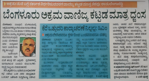 ಬೆಂಗಳೂರು ಅಕ್ರಮ ವಾಣಿಜ್ಯ ಕಟ್ಟಡ ಮಾತ್ರ ಧ್ವಂಸ